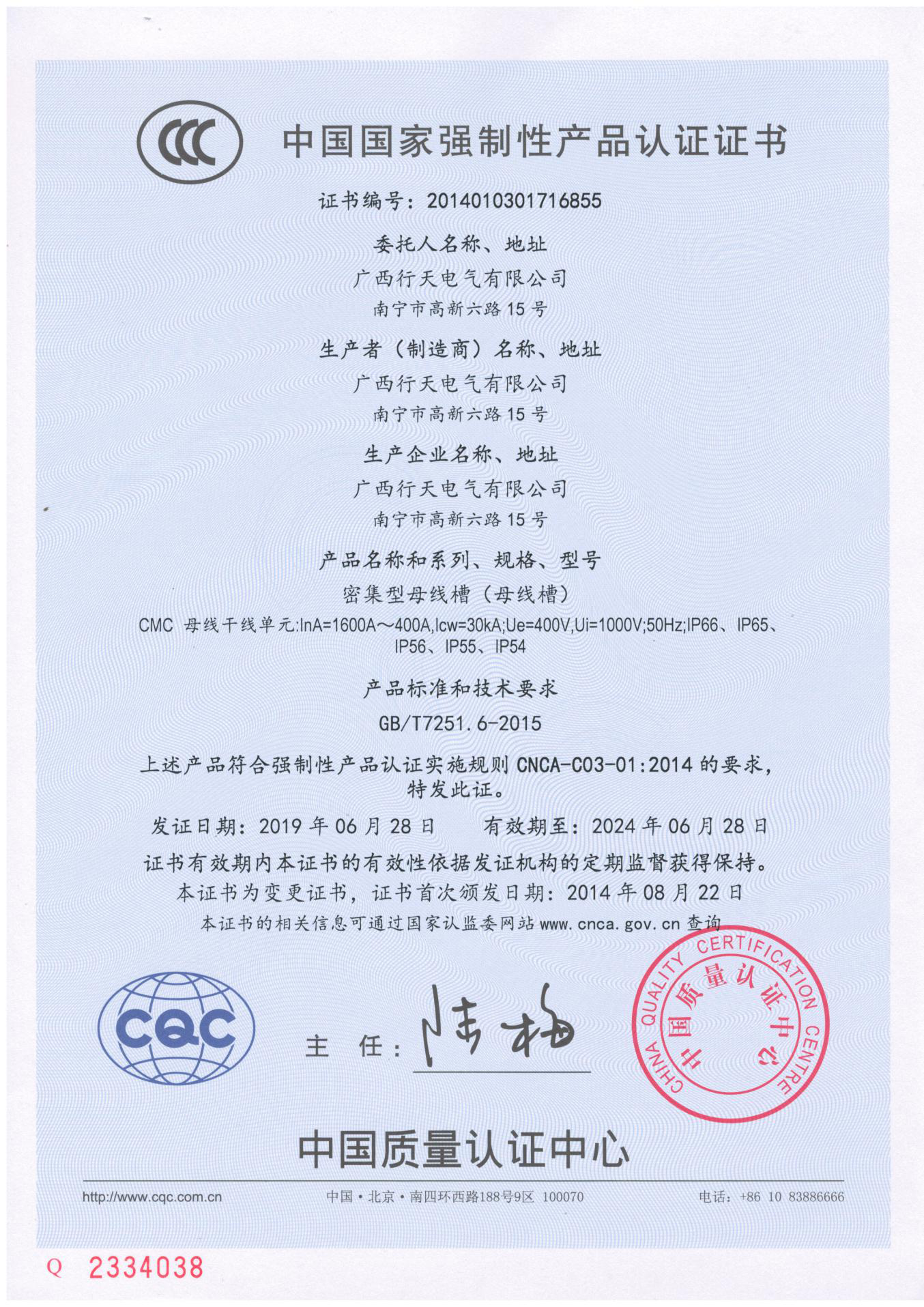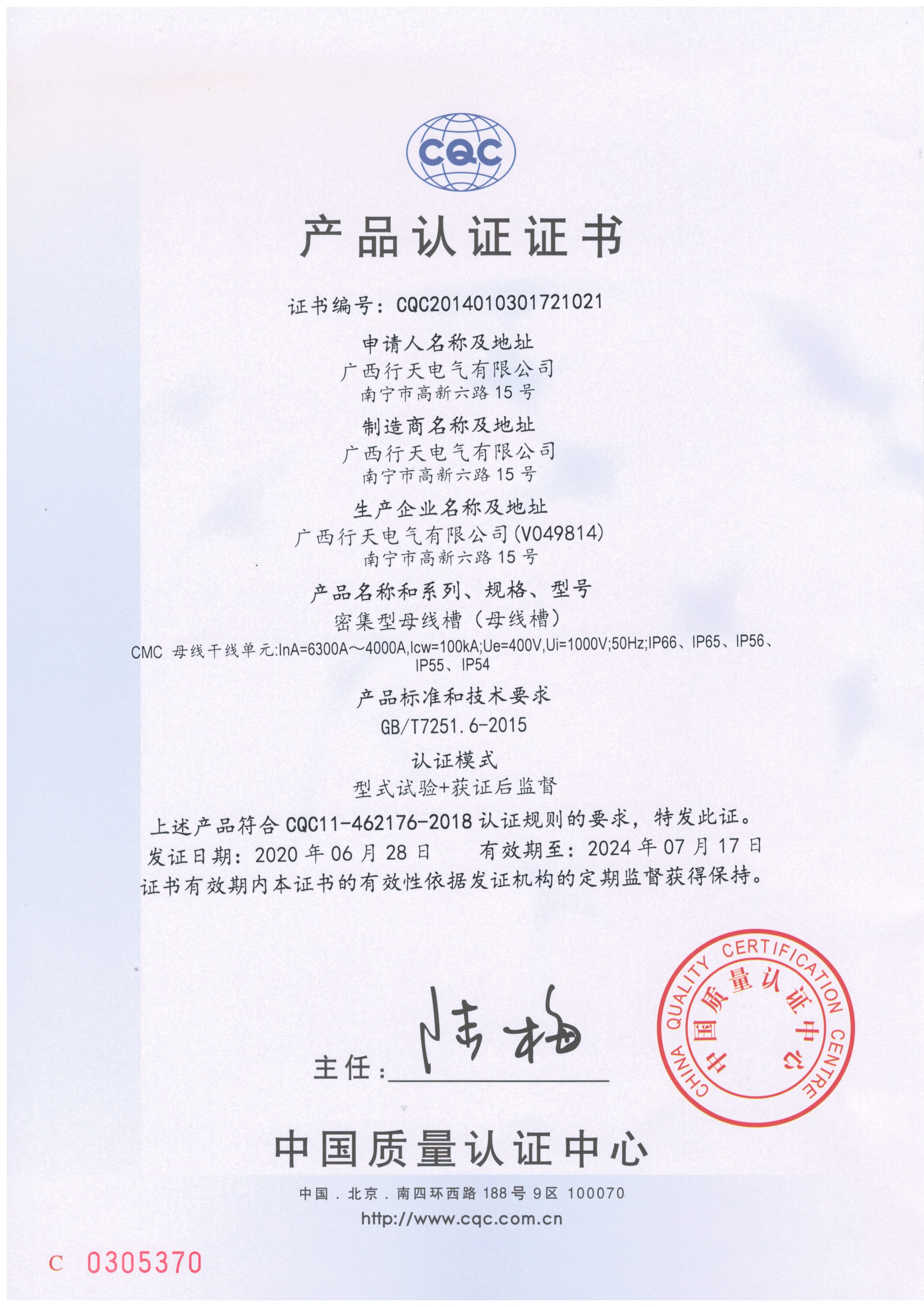 1600-400A母線槽CQC