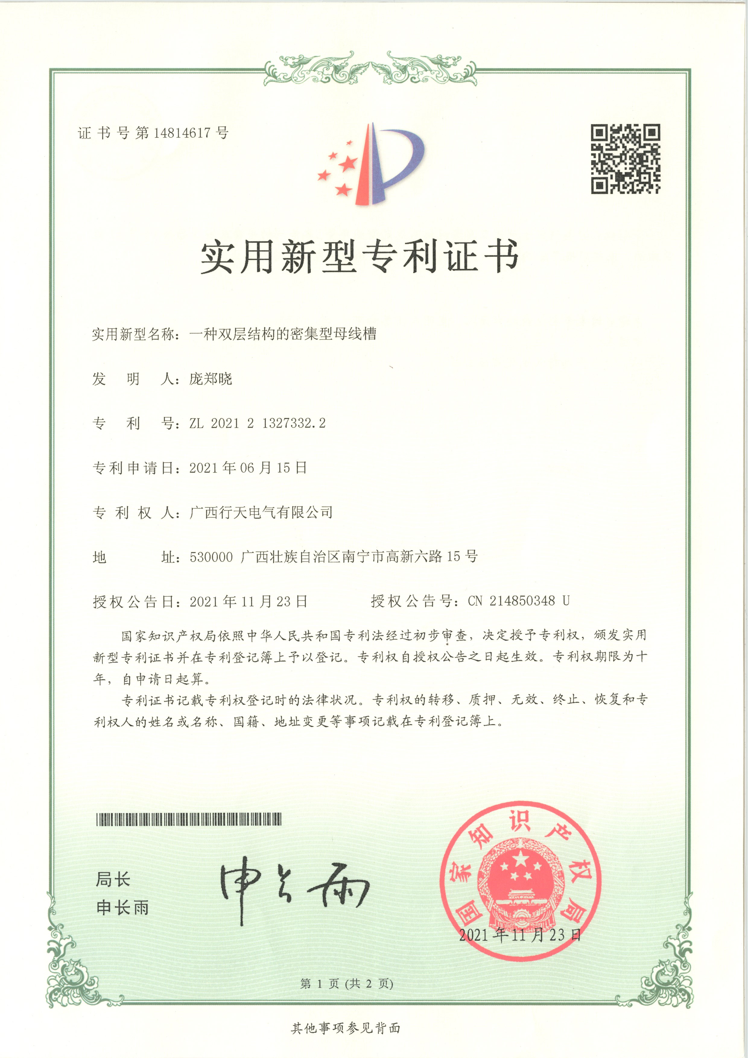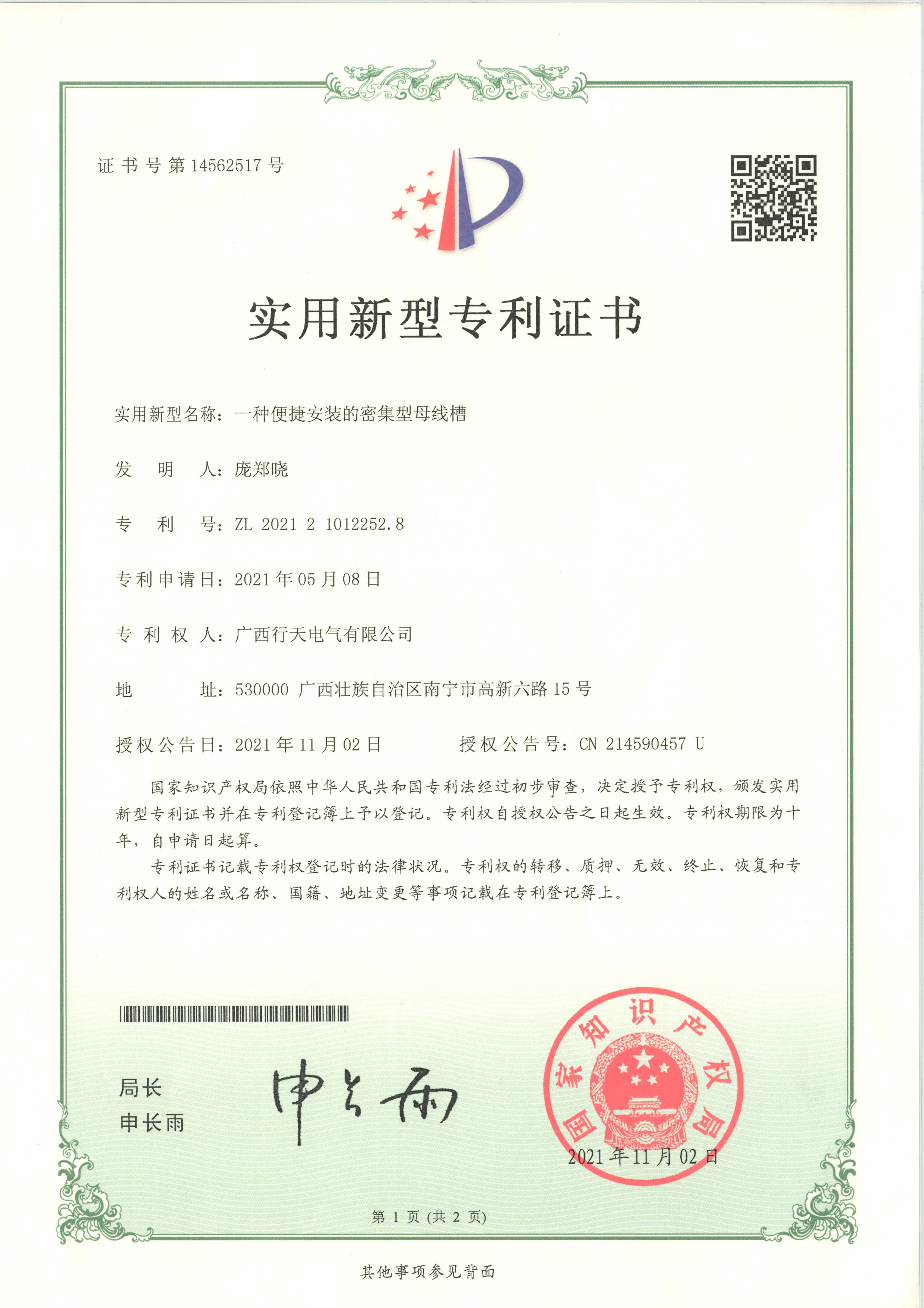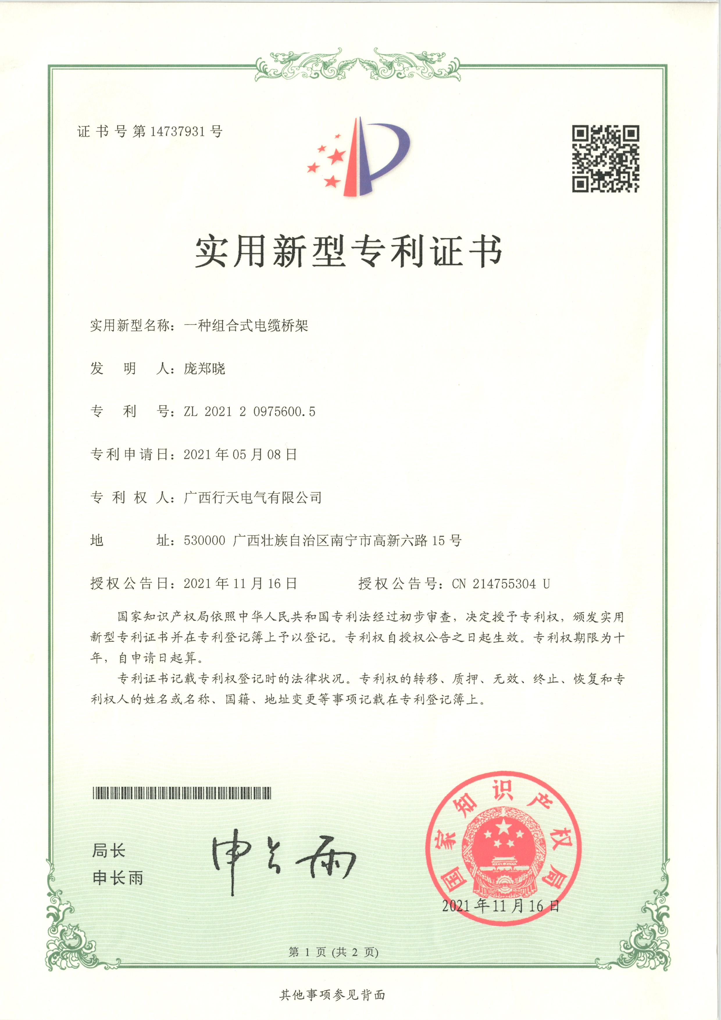 實用新型專利證書